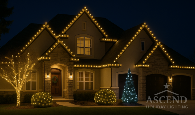 ASCEND Holiday Lighting provides full-service holiday light rental and installation, which means you don’t have to worry about buying, storing, or maintaining your own lights. Our professional team designs, installs, and secures each strand with precision, ensuring your home or business shines safely and beautifully all season long.